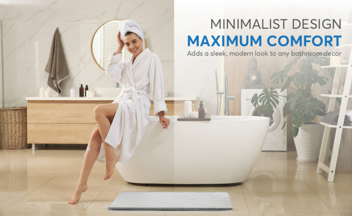 Modern matte finish fits seamlessly into any space: bathrooms, kitchens, laundry rooms, or even as a pet bowl mat, or under plants.